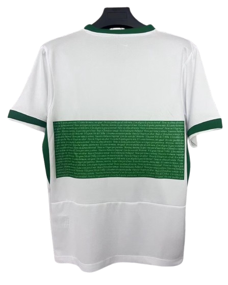 Couleur et motif : Le maillot est dominé par un blanc immaculé, rehaussé d'une large bande horizontale verte qui traverse la poitrine. Ce motif, qui fait la fierté des supporters, est une véritable déclaration de style et d'héritage.