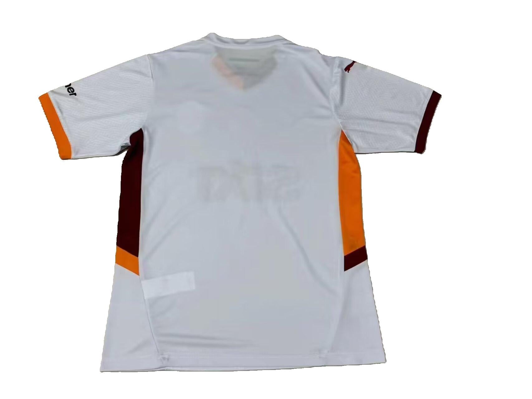 Le maillot extérieur du Galatasaray pour la saison 2024-2025, conçu par Puma, se présente avec une base blanche élégante et des détails rouges, notamment sur le col et les manches, reflétant les couleurs historiques du club.