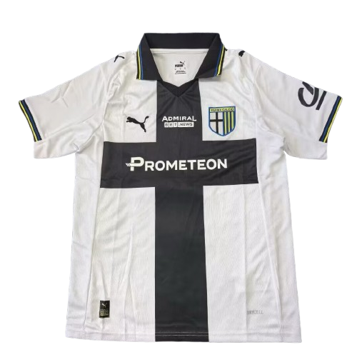Affichez avec fierté l’élégance emblématique du football italien dans votre boutique grâce au maillot domicile Parma FC 2025-2026, une création Puma fidèle à la tradition : sa base blanche immaculée est traversée de la célèbre croix noire (« Crociata ») sur le devant, avec le logo Puma et l’écusson du club parfaitement centrés pour un style classique et intemporel.