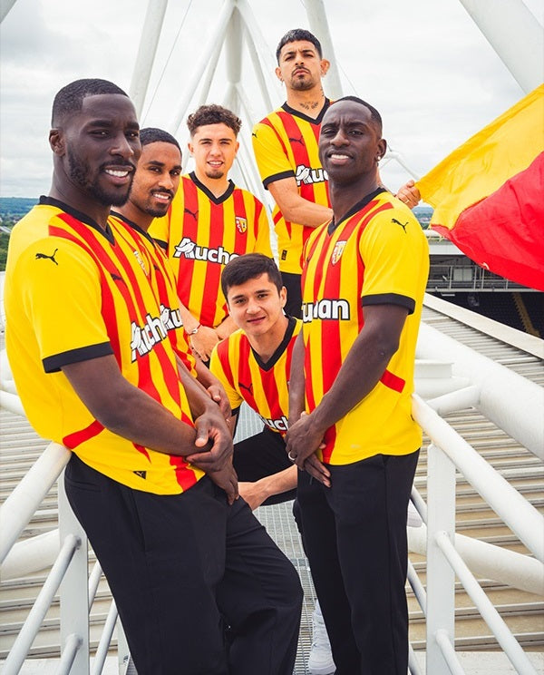 Le maillot domicile du RC Lens pour la saison 2024-2025, conçu par Puma, célèbre l’héritage et la passion du club artésien. Il remet à l’honneur les emblématiques bandes verticales sang et or, signature historique du Racing, tout en y intégrant un motif graphique inspiré de l’architecture du stade Bollaert-Delelis, véritable cœur du club et de la ville.