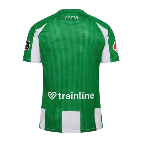 Ce modèle iconique reprend les traditionnelles rayures verticales vertes et blanches, véritable symbole de l’identité du club, tout en intégrant des détails modernes et une coupe raffinée pour un look résolument actuel.