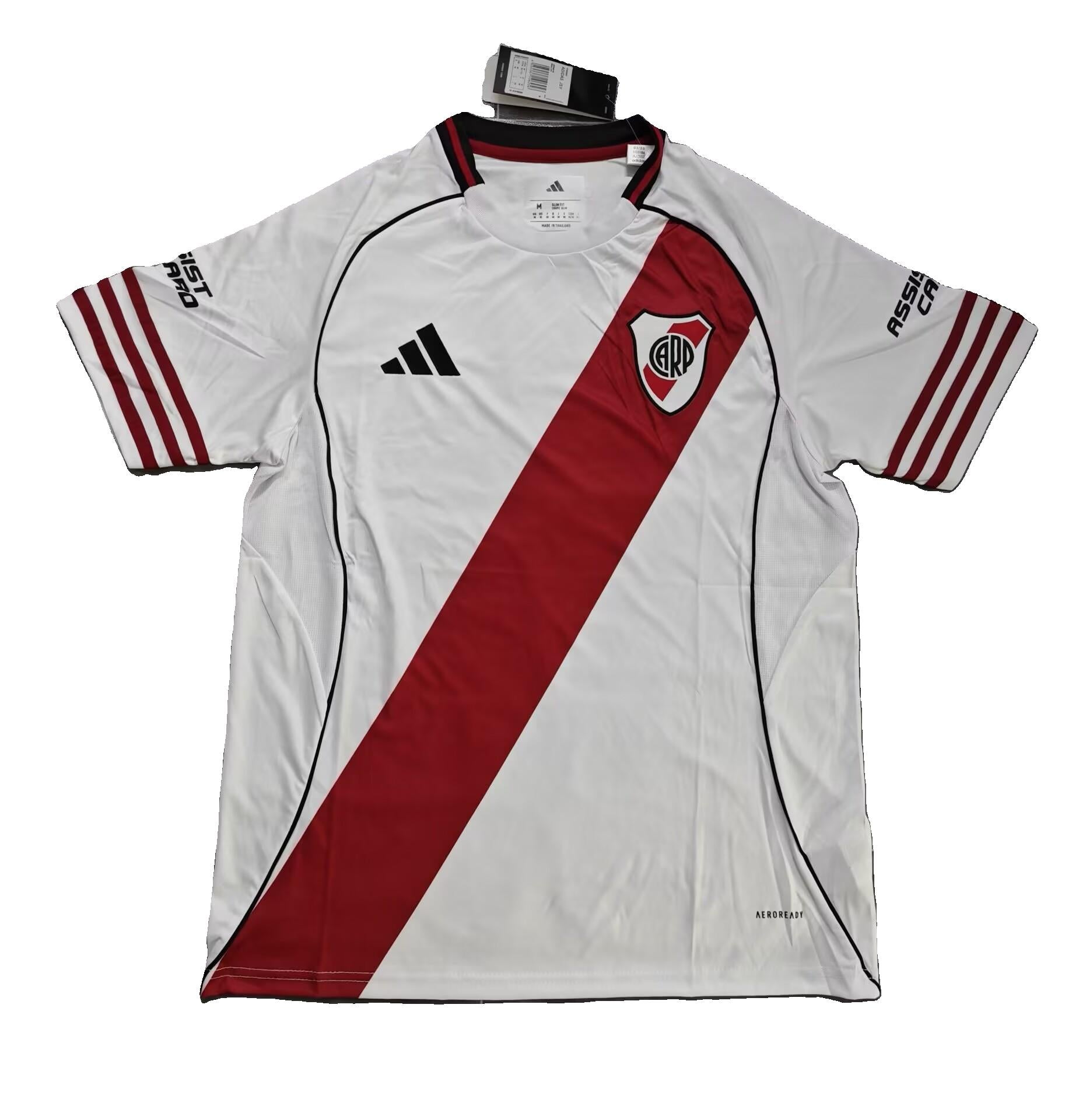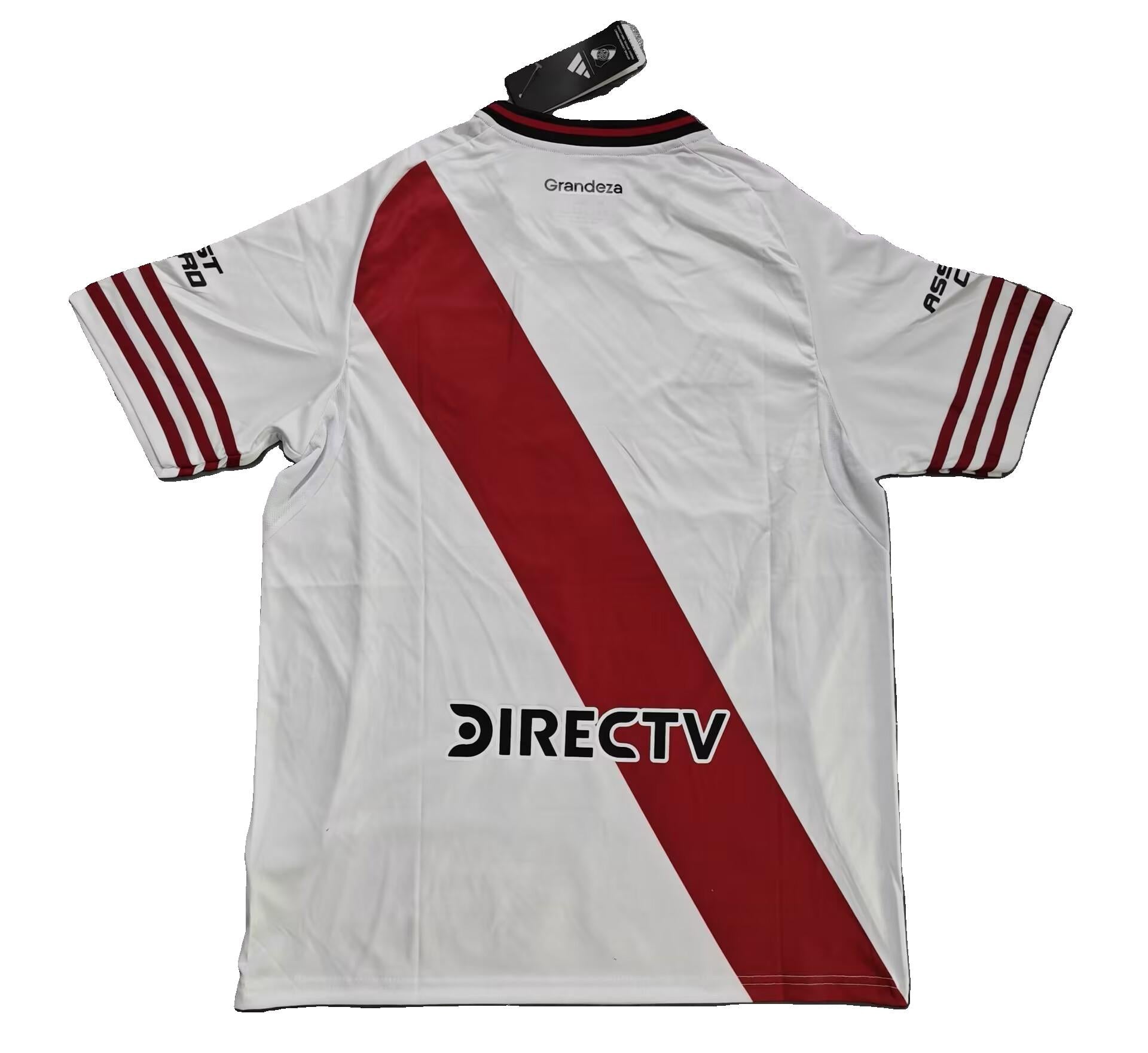 Il présente une base blanche épurée, traversée par la célèbre bande rouge diagonale (« La Banda Roja »), symbole emblématique de River Plate.