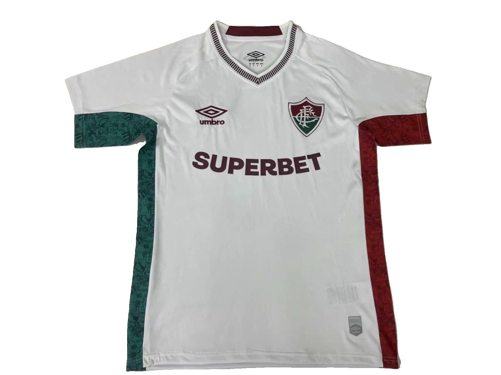 Le maillot extérieur de Fluminense pour la saison 2025-2026, conçu par Umbro, affiche une base blanche élégante et fidèle à la tradition du club.