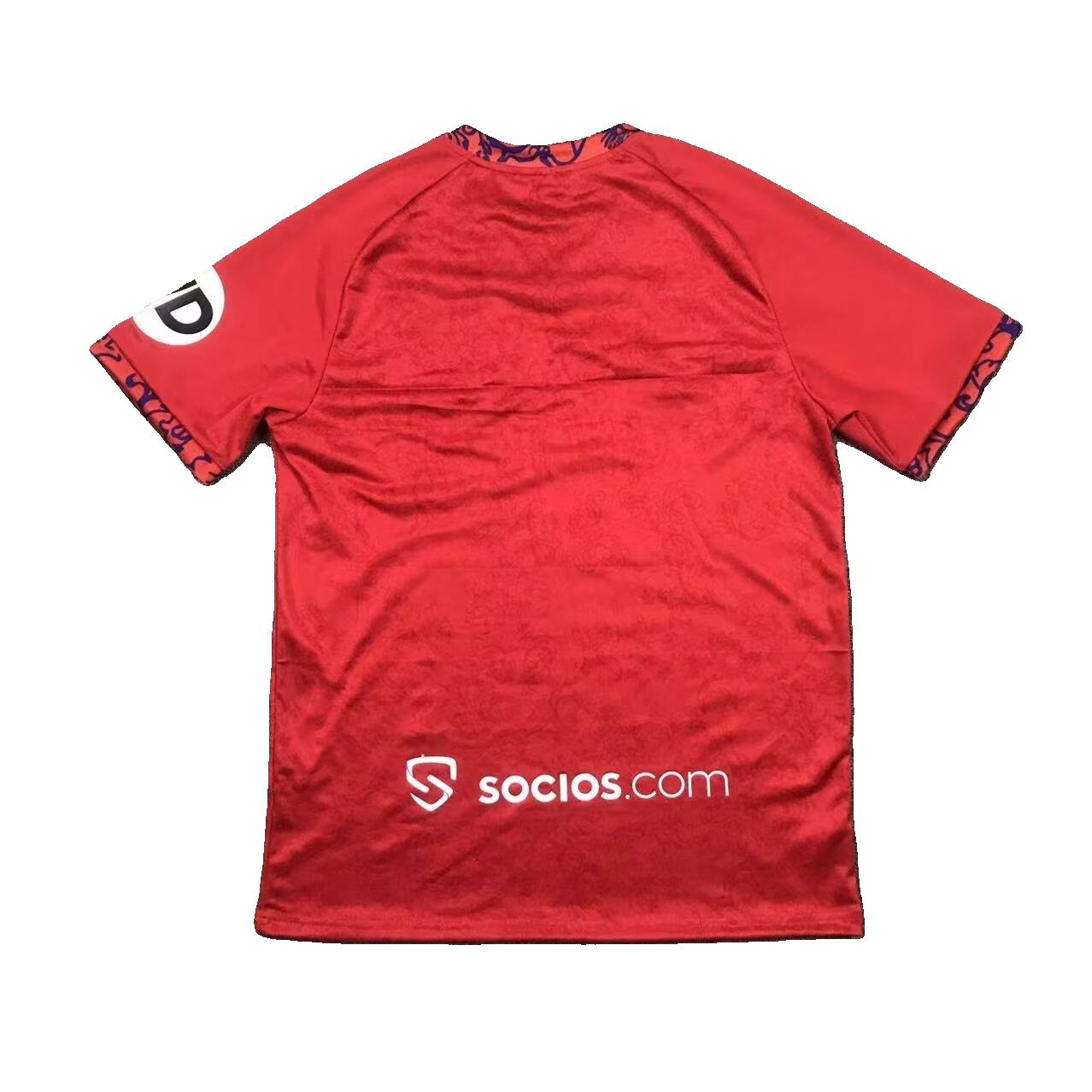 Le maillot extérieur du FC Séville pour la saison 2024-2025, conçu par Castore, rend hommage à la céramique typique de la ville de Séville. Il se distingue par un mélange de teintes rouges et violettes, intégrant des motifs inspirés des carreaux de céramique que l’on retrouve dans de nombreuses maisons et monuments sévillans. Ce design met en avant l’artisanat local et la beauté intemporelle du carrelage classique, soulignant la richesse culturelle de la région. Le maillot allie ainsi élégance, histoire et identité locale, tout en offrant confort et qualité grâce à des matériaux techniques modernes.