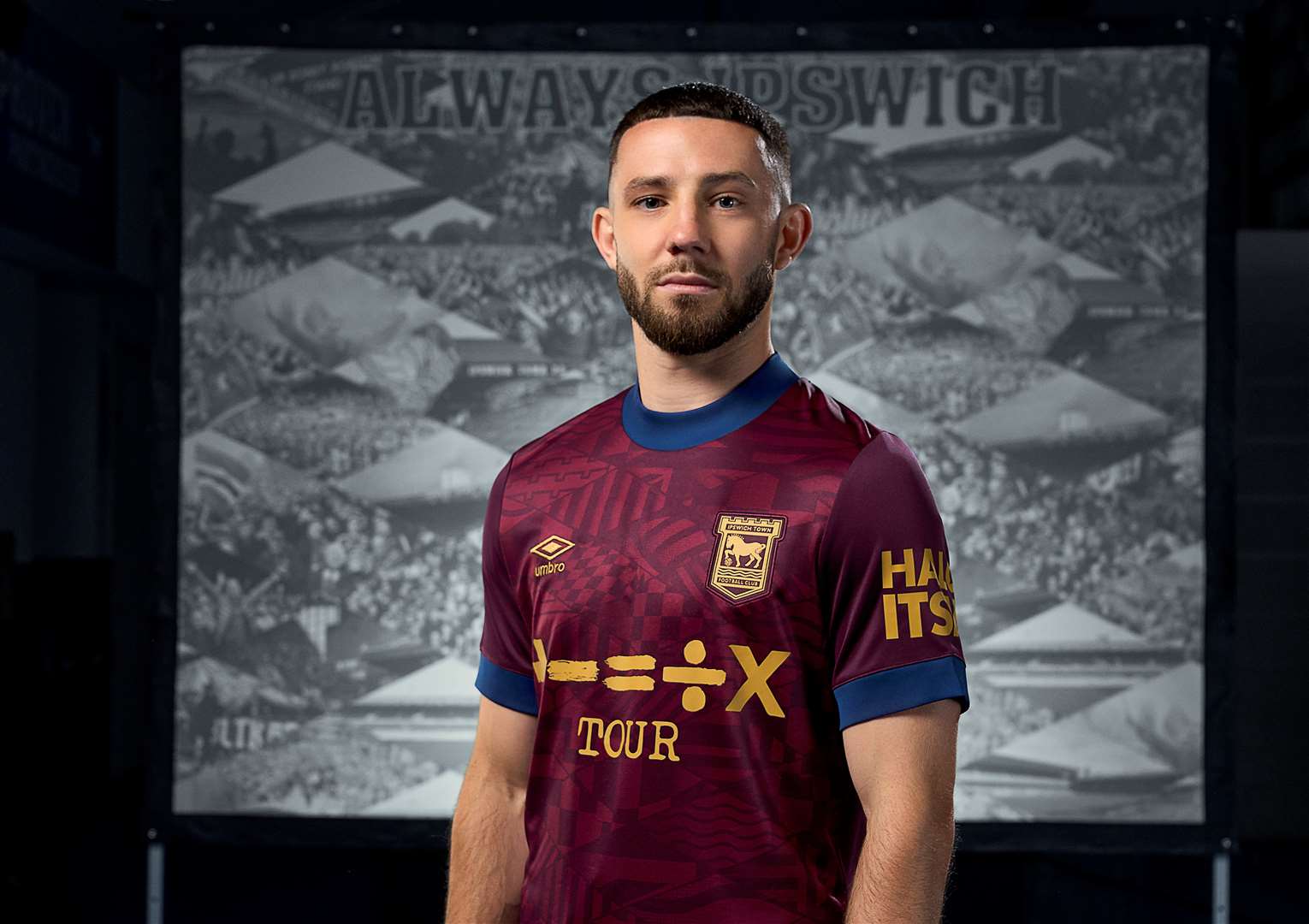 Un graphisme représentant le stade rempli de supporters recouvre le maillot, rendant hommage à l’atmosphère vibrante de Portman Road les jours de match.
