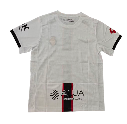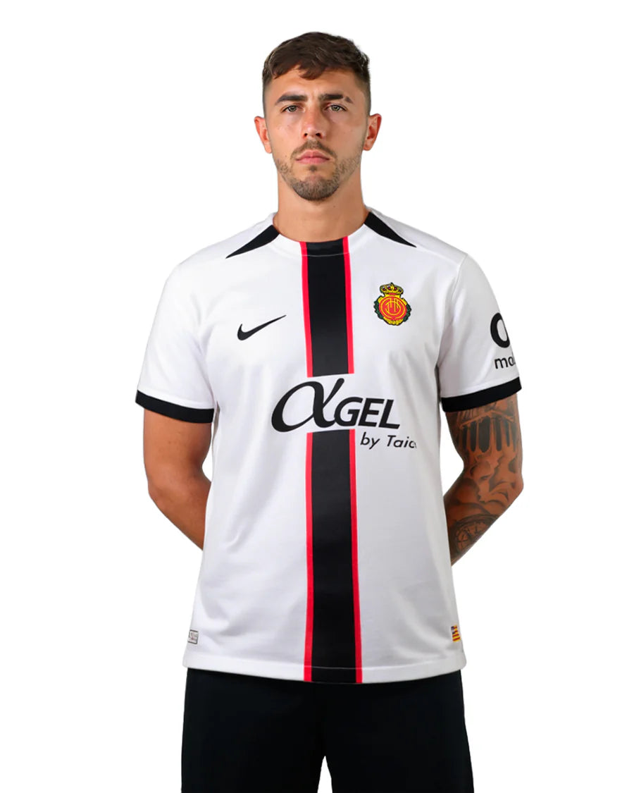 Ce modèle arbore une base claire relevée de touches rouges et noires rappelant l'identité majorquine, avec le blason brodé du club sur la poitrine et le swoosh Nike, tandis que la structure ajustée et le tissu technique respirant offrent un confort idéal pour les matchs comme pour le quotidien.