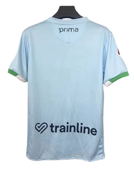 Le maillot extérieur Real Betis 2025-2026 signé Hummel séduit par son bleu ciel clair intense agrémenté d’une bande diagonale verte-blanche-verte dynamique, reflétant l’identité andalouse avec modernité et élégance.