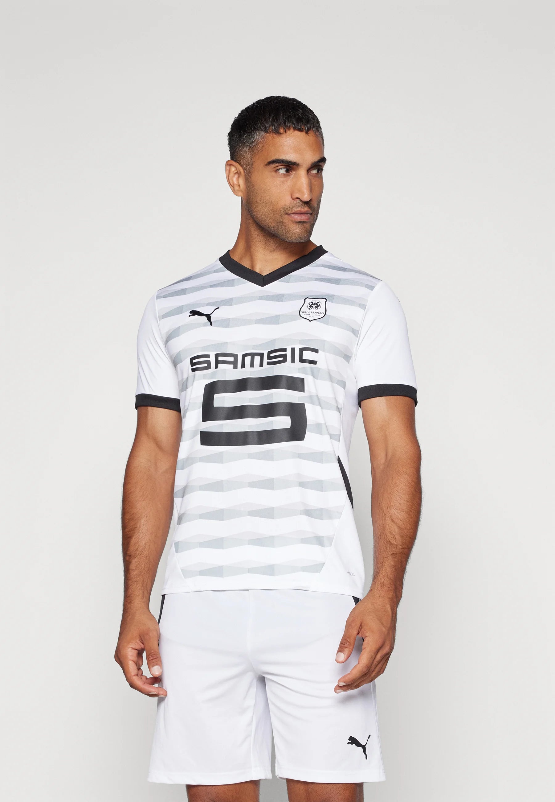 Le maillot extérieur du Stade Rennais pour la saison 2024-2025, conçu par Puma, s’inspire de l’architecture emblématique de la ville de Rennes. Il se distingue par une palette de tons blanc, gris et noir, rendant hommage aux bâtiments symboliques qui façonnent l’identité urbaine rennaise. Ce design moderne et élégant met en avant la silhouette et l’esthétisme des constructions locales, offrant ainsi une tunique à la fois sobre et sophistiquée.