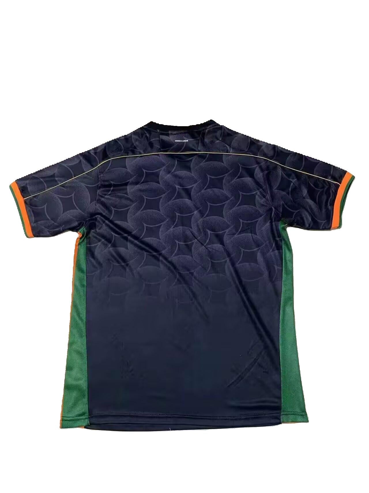 Le maillot domicile du Venezia FC pour la saison 2024-2025, conçu par Nocta, se distingue par son design graphique raffiné et ses couleurs emblématiques : une base noire rehaussée de touches orange et vert, qui rappellent l’identité visuelle du club et la ville de Venise.