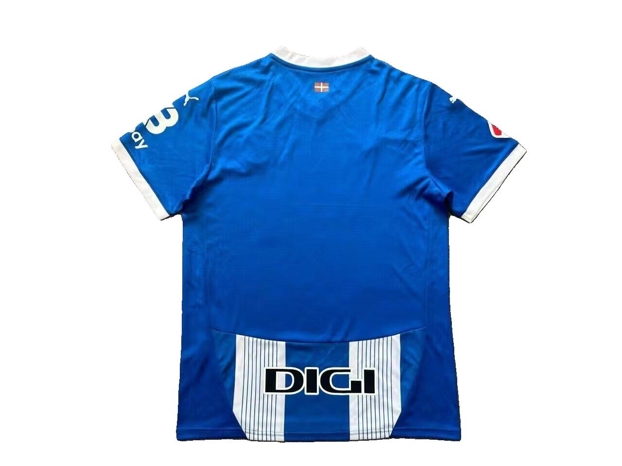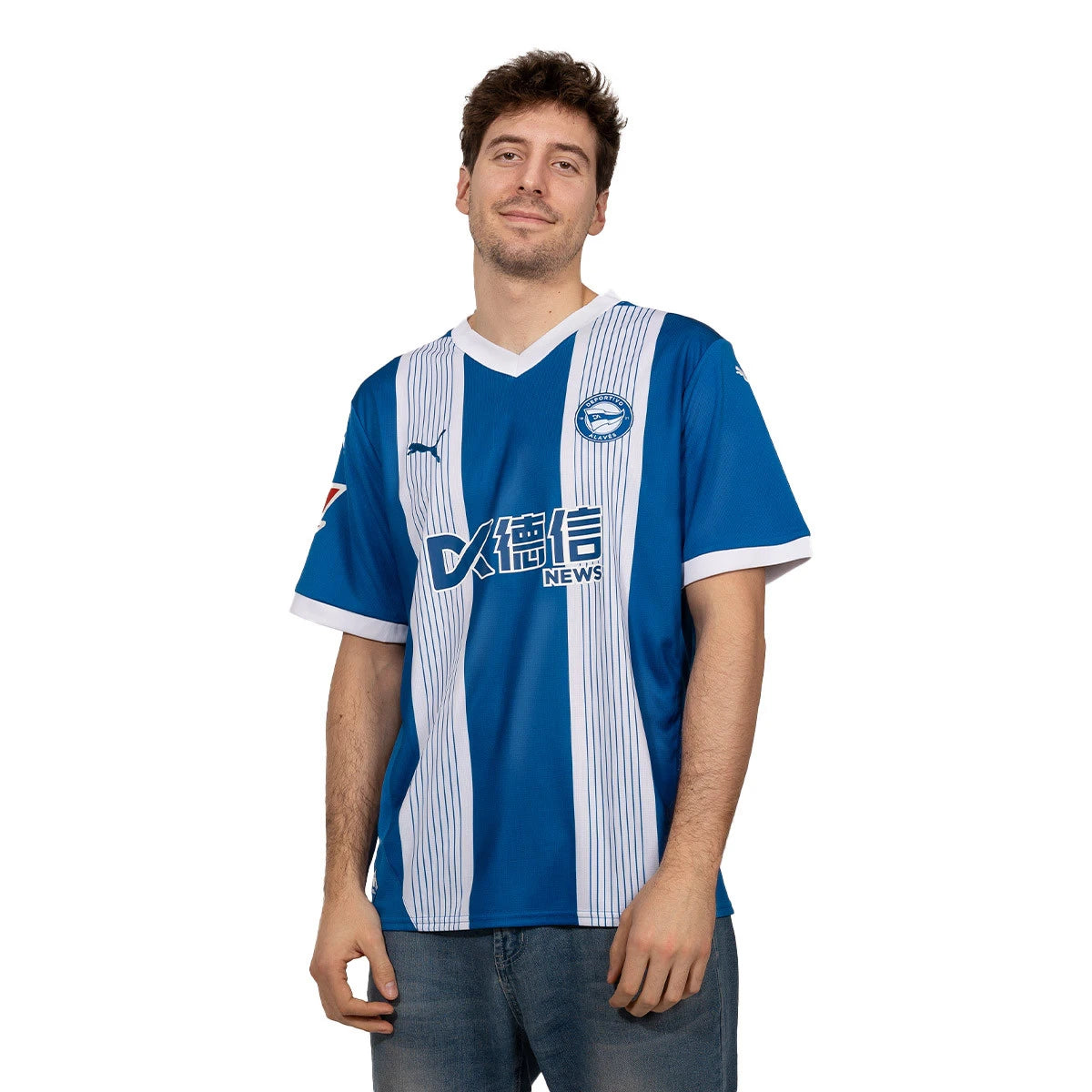 - Le maillot domicile Deportivo Alavés 2024-2025, conçu par Puma, reprend les traditionnelles bandes verticales bleues et blanches qui incarnent l’identité historique du club.