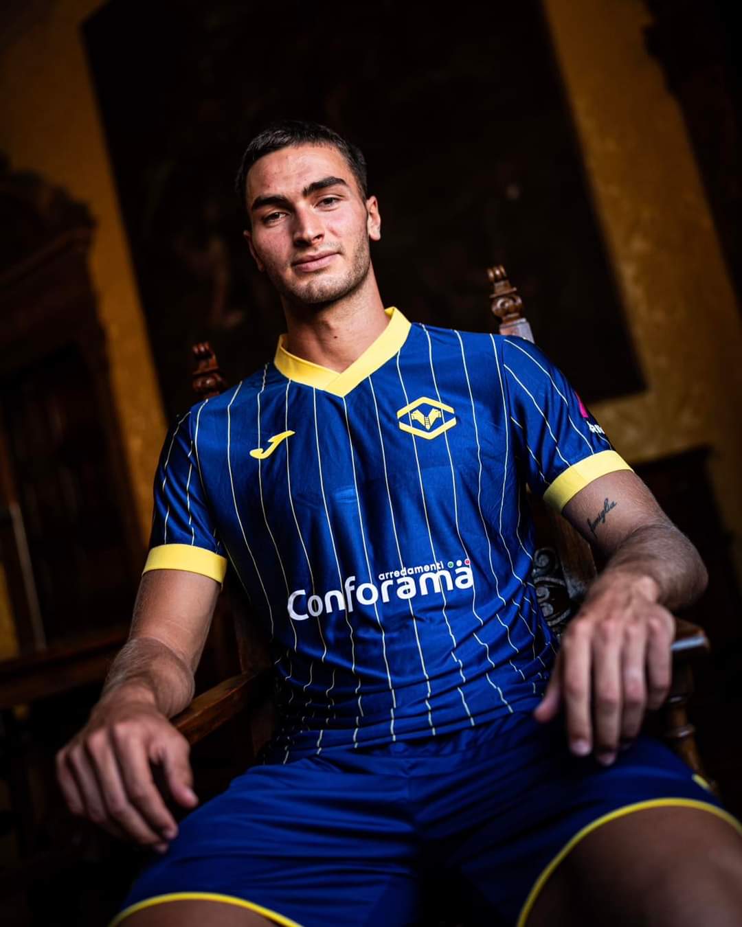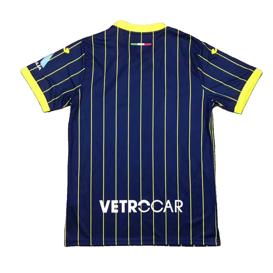 Le maillot domicile de l’Hellas Vérone pour la saison 2024-2025, conçu par Joma, affiche les couleurs traditionnelles du club : bleu marine avec des touches de jaune. Le design reste fidèle à l’identité du club, avec une dominante bleu foncé rehaussée de détails jaunes, notamment au niveau du col et des manches. Le sponsor principal est 958 Santero et le maillot est fabriqué dans un tissu technique favorisant l’évacuation de la transpiration. Ce modèle incarne l’élégance classique de l’Hellas Vérone tout en intégrant des matériaux modernes pour le confort et la performance.