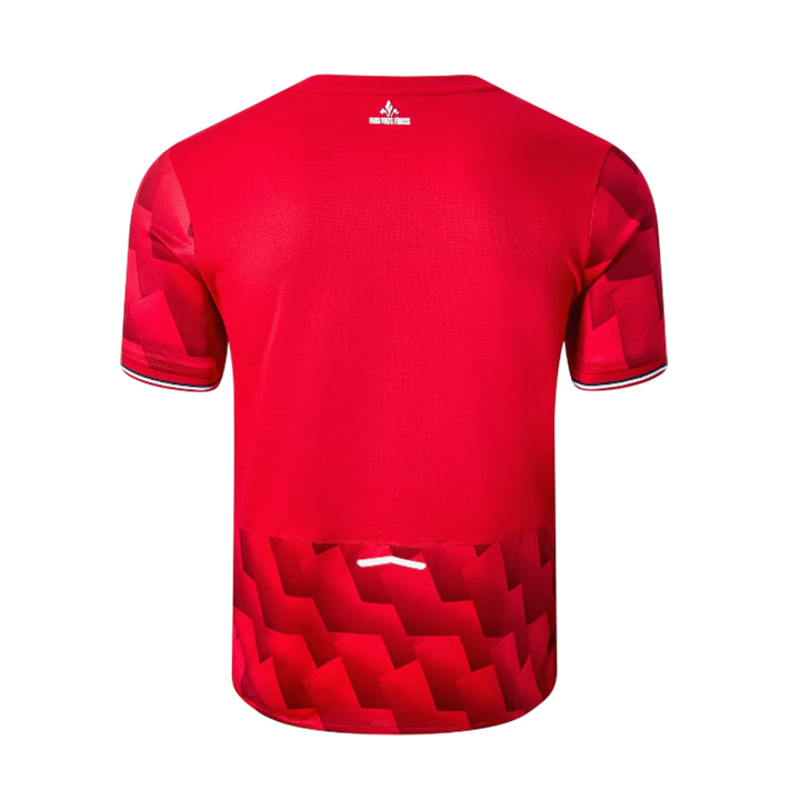 ✔ Rouge intense emblématique du club, enrichi d’un motif géométrique unique inspiré du plan de la Citadelle