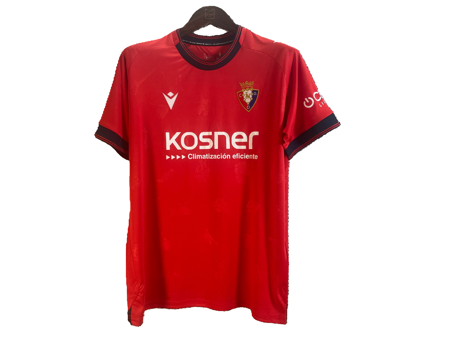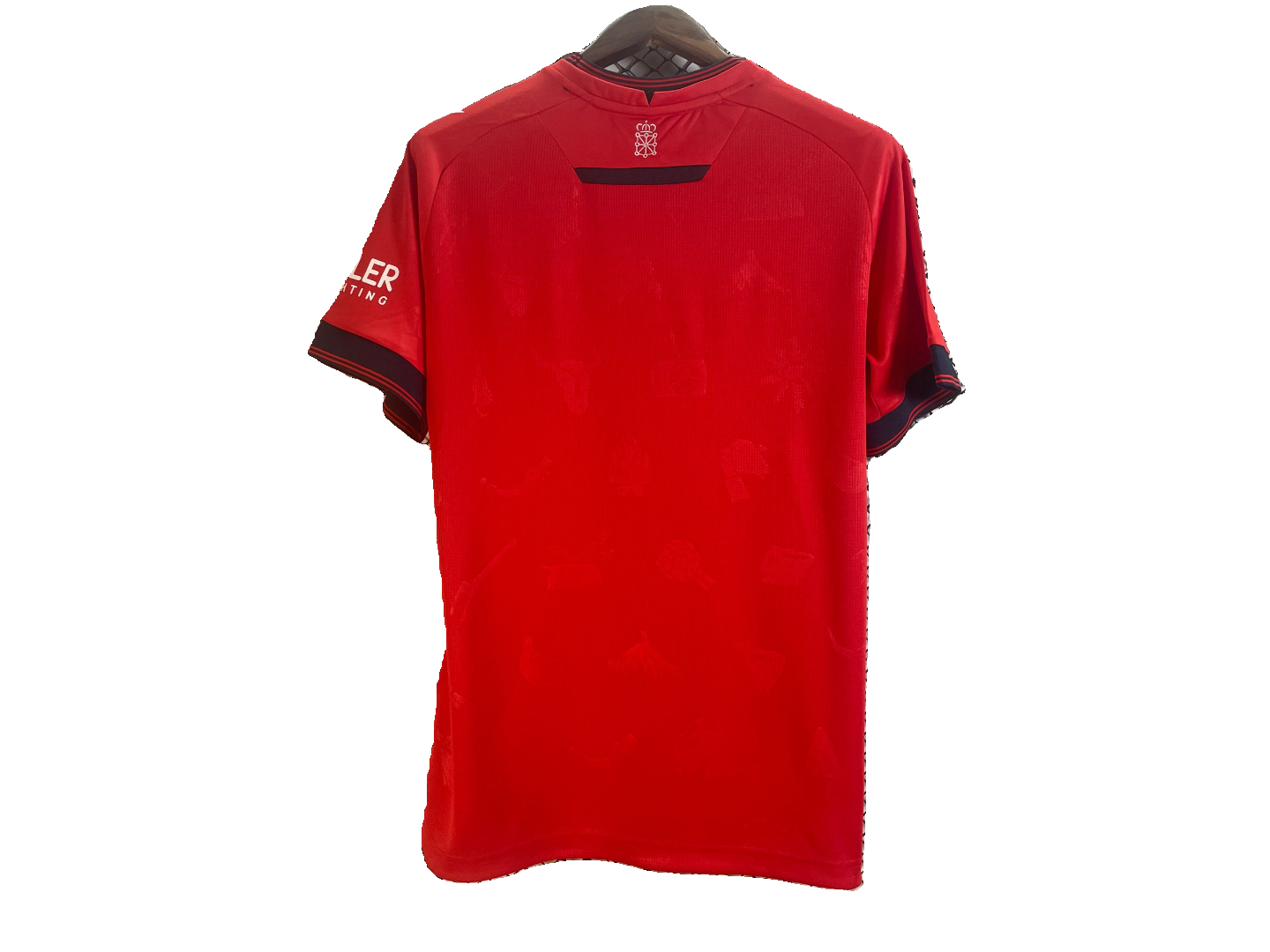 Le maillot domicile d’Osasuna pour la saison 2024-2025, conçu par Macron, affiche une teinte rouge intense, fidèle à la tradition du club. Il se distingue par des détails en relief à l’avant et à l’arrière, représentant vingt icônes de la culture navarraise, embossées directement sur le tissu. Le col rond et les extrémités des manches sont agrémentés de touches de bleu, apportant du contraste au design classique. Le maillot est fabriqué en Eco Softlock, un tissu écologique issu à 100 % de polyester recyclé, garantissant confort, légèreté et engagement environnemental. Le logo du club est brodé sur la poitrine, soulignant l’identité et la fierté d’Osasuna.