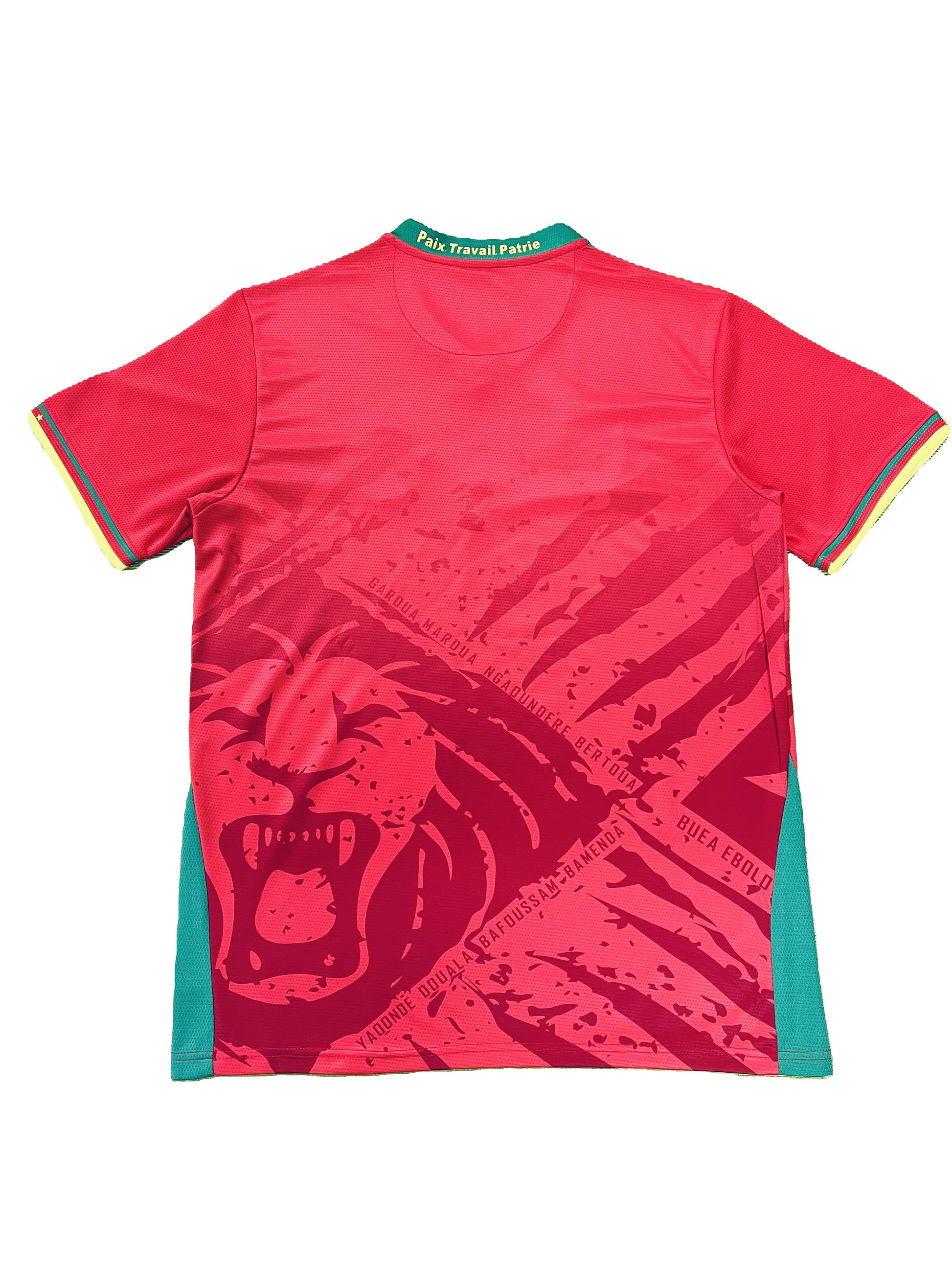 Ce maillot séduit par sa couleur rouge éclatante, symbole de puissance et d’énergie, qui met en valeur l’identité unique de la sélection camerounaise.