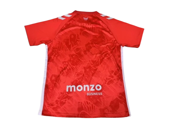 Détails de qualité : Les célèbres chevrons d'Hummel ornent les épaules en blanc pur, un détail qui se retrouve aussi sur les côtés pour un contraste saisissant. Les logos d'Hummel et du sponsor Monzo sont également en blanc, complétant l'esthétique du maillot.