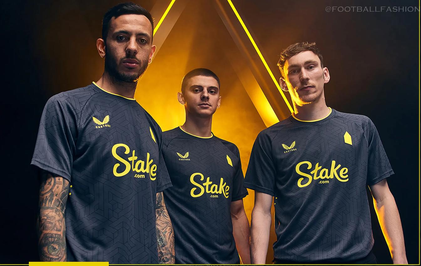 Le maillot extérieur Everton 2024-2025, conçu par Castore, présente une couleur principale anthracite foncé/noir.