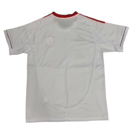 Le logo Adidas rouge et les finitions sur les manches apportent une touche distinctive, tandis que l’écusson du club s’affiche dans un bouclier inédit, offrant une allure à la fois fraîche et emblématique.