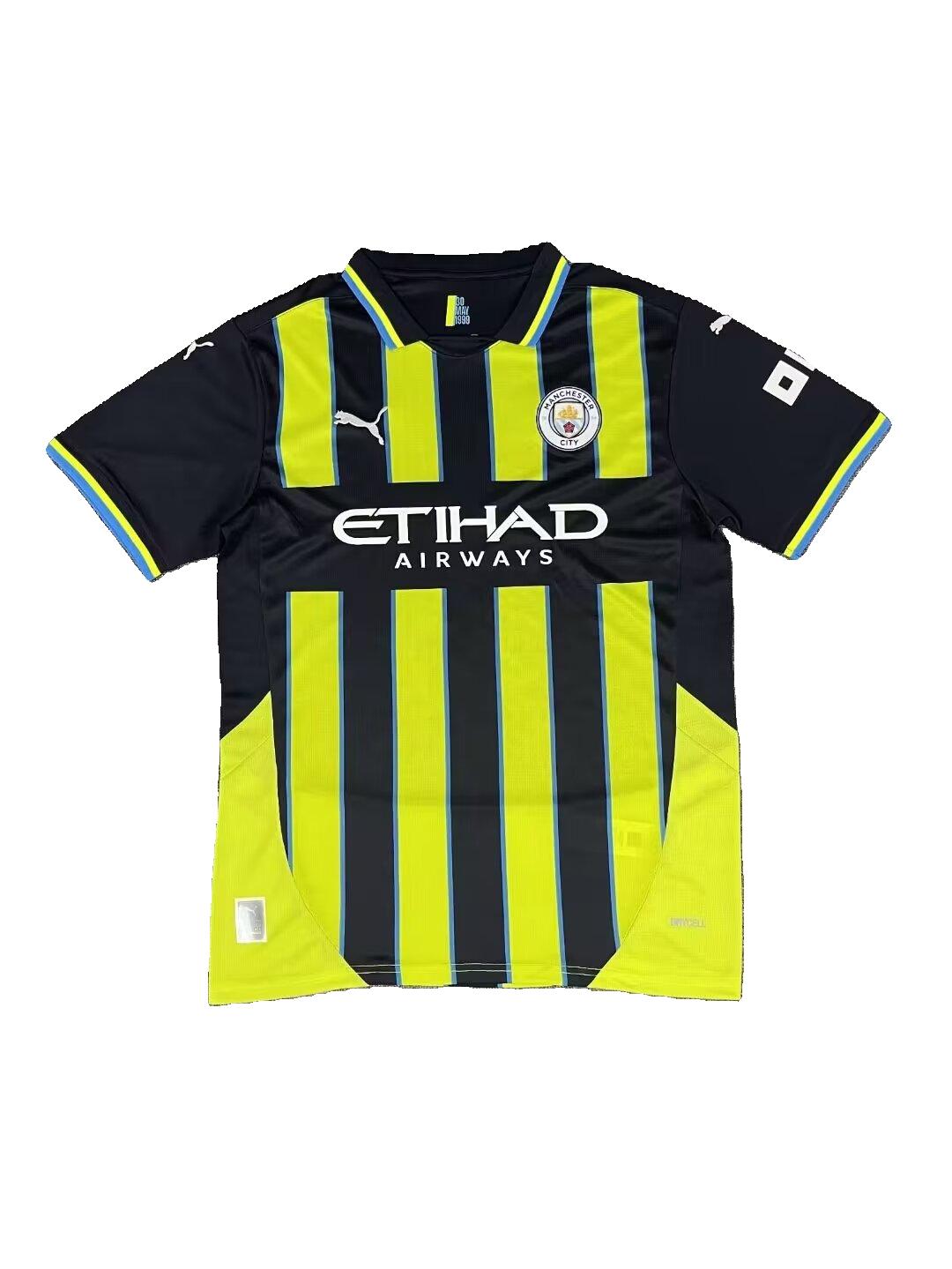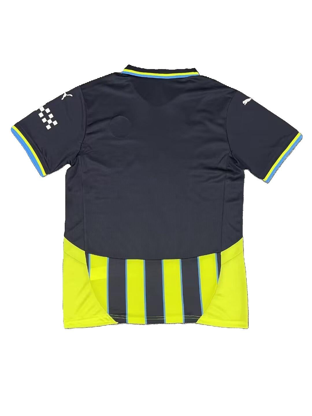 - Le maillot extérieur Manchester City 2024-2025, conçu par Puma, s’inspire du kit iconique porté lors de la saison 1998-1999, année marquante pour le club avec la victoire en play-off de montée.