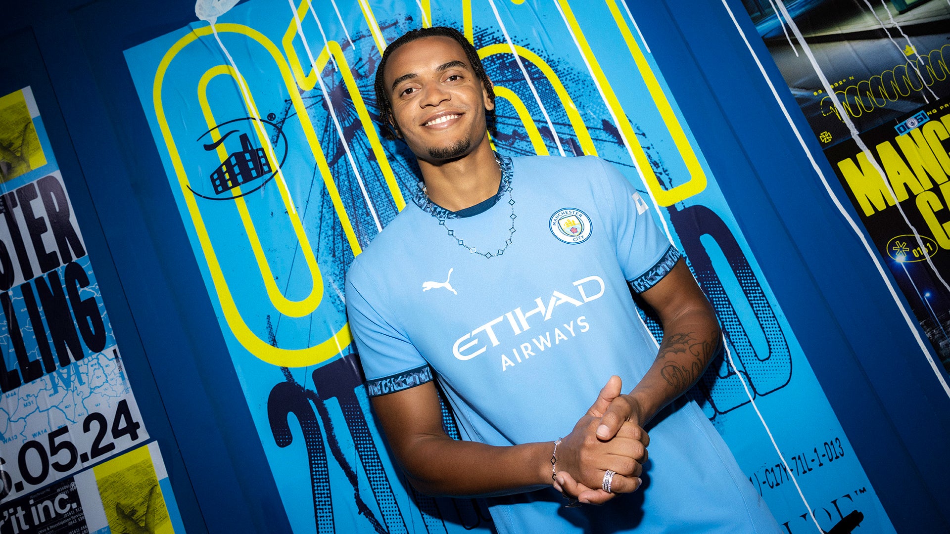 L’écusson du club, le logo Puma et le sponsor Etihad Airways sont tous alignés au centre du maillot, les uns sous les autres, pour une esthétique moderne et épurée.