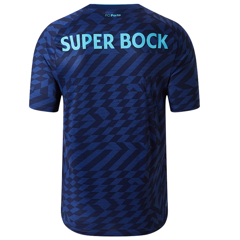 Le maillot third du FC Porto pour la saison 2024-2025, conçu par New Balance, se distingue par une teinte bleu marine profonde agrémentée de détails dorés, offrant un design à la fois moderne et sophistiqué.