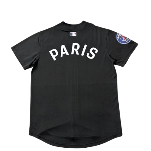 Au dos, la signature « PARIS » accompagne le discret motif de batteur MLB, clin d’œil subtil au prestige du base-ball nord-américain et à la nouvelle ambition mondiale du PSG.