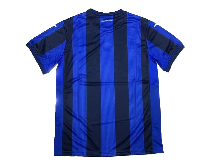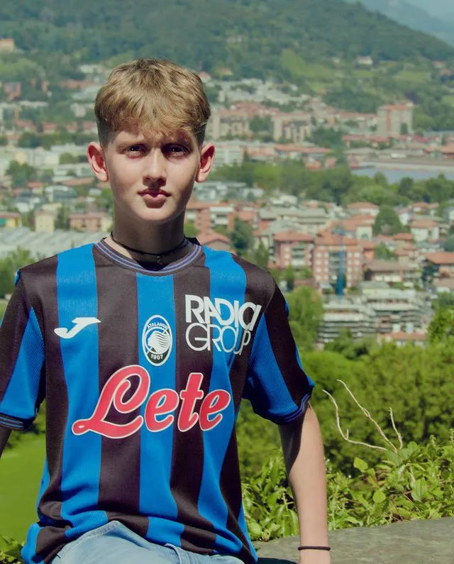 Le maillot domicile de l’Atalanta Bergame pour la saison 2024-2025, conçu par Joma, reprend le design classique du club avec des rayures verticales bleu et noir sur toute la longueur du maillot. Il est fabriqué en polyester 100 % recyclé, un tissu écologique léger, élastique et respirant, intégrant la technologie MICRO-MESH SYSTEM sous les bras et sur les côtés pour une meilleure évacuation de la transpiration. Le maillot possède un col rond en côtes, des poignets assortis, une coupe régulière avec petites ouvertures latérales pour plus de liberté de mouvement, et des coutures plates FLATLOCK pour éviter les irritations. L’écusson du club est thermoscellé au centre du torse, et une inscription "ATALANTA BERGAMO" figure à l’arrière, avec à l’intérieur le slogan "LA MAGLIA SUDATA SEMPRE". Ce maillot allie ainsi tradition, confort et engagement environnemental.
