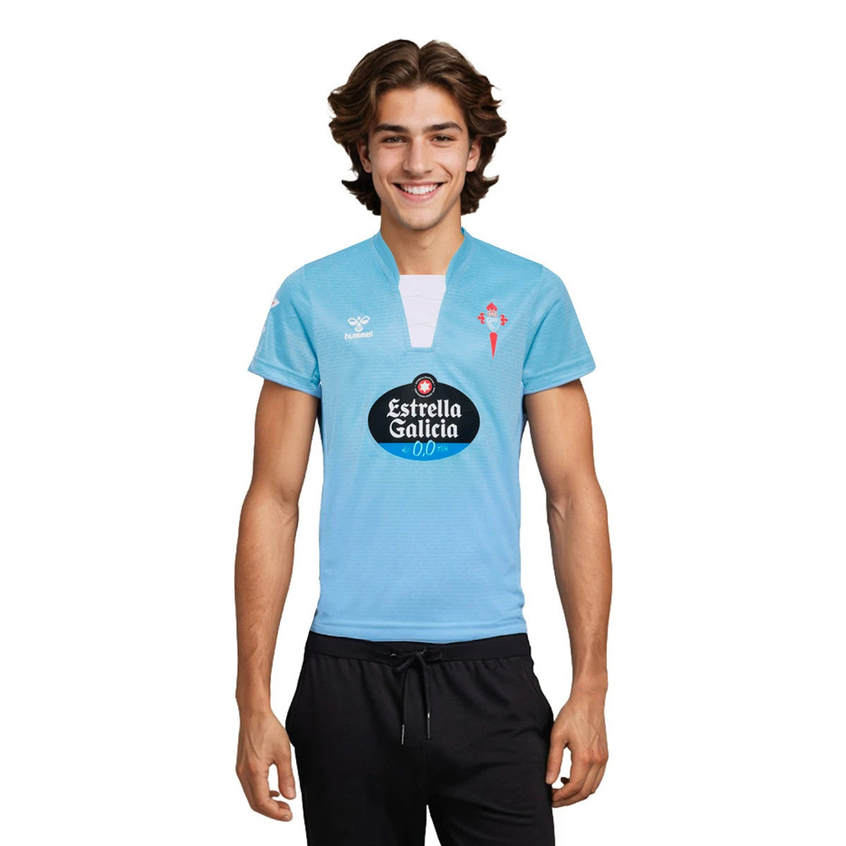 - Le maillot domicile reste fidèle à la tradition du club avec une couleur principale bleu ciel, emblématique du Celta Vigo.