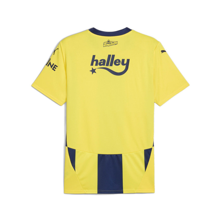 Le maillot domicile du Fenerbahçe pour la saison 2024-2025, conçu par Puma, marque un retour au style classique avec des bandes verticales bleu marine et jaune, plus larges que lors des saisons précédentes, soulignant l'identité historique du club. Il présente un col en V, une coupe régulière et des manches courtes pour assurer confort et liberté de mouvement.