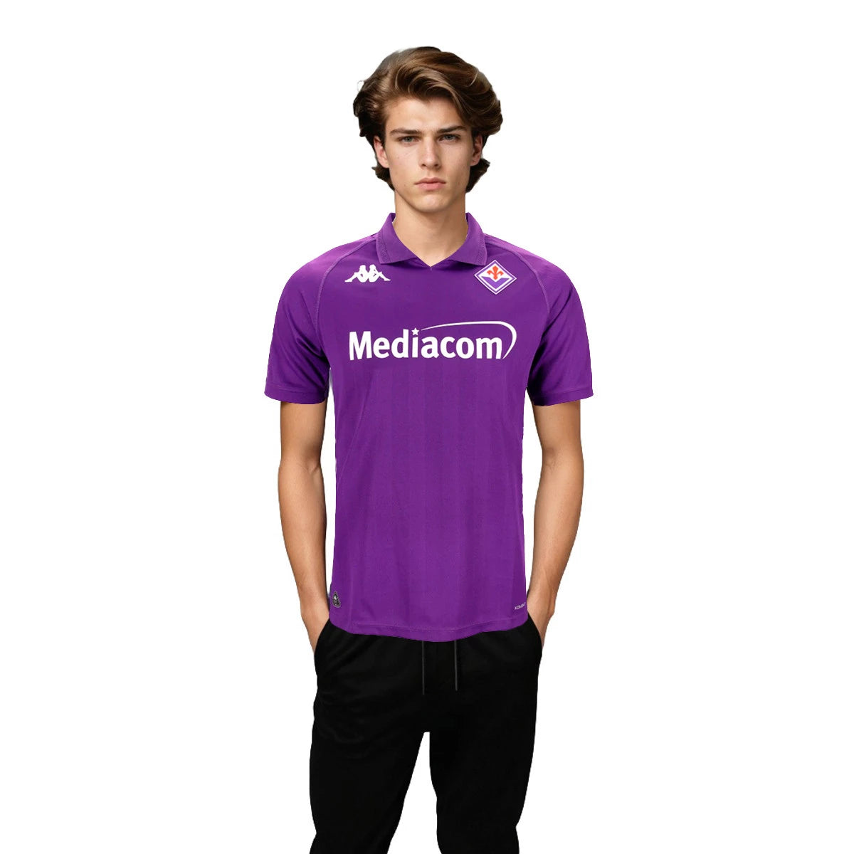 Le maillot domicile de la Fiorentina pour la saison 2024-2025, conçu par Kappa, affiche un design classique et élégant fidèle à l’identité du club. Il est entièrement violet, couleur emblématique de la Fiorentina, avec des détails blancs subtils sur les manches et le col, qui est de type polo cette saison. Le tissu est 100 % polyester recyclé, ultra-respirant, assurant confort et évacuation de la transpiration, aussi bien pour les joueurs que pour les supporters. Ce maillot met en avant la sobriété et la tradition tout en intégrant des finitions modernes pour la performance.
