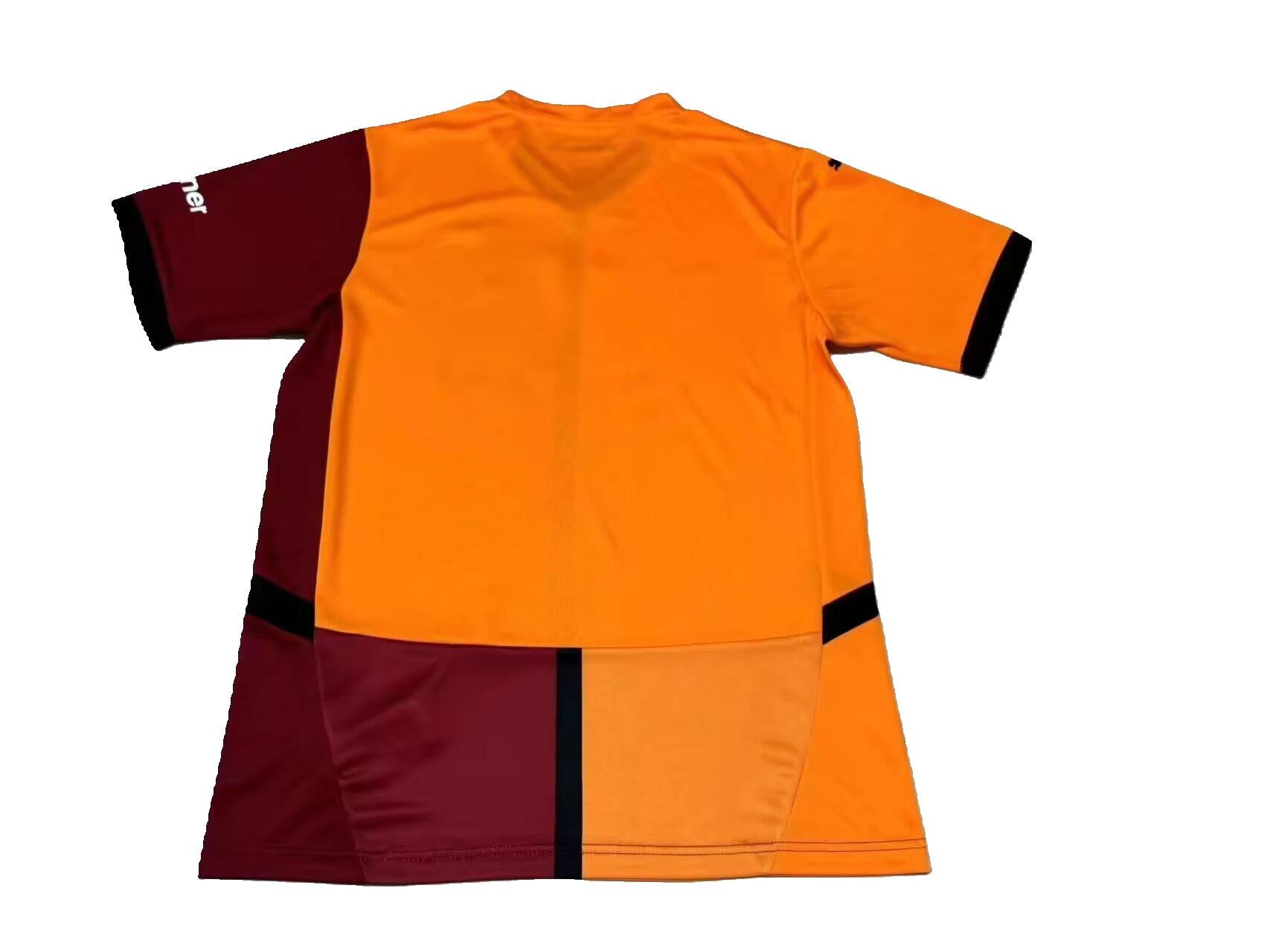 Le maillot domicile du Galatasaray pour la saison 2024-2025, conçu par Puma, modernise le légendaire design bordeaux et or du club avec une large bande centrale noire, accompagnée de détails contrastés au col, aux poignets et sur les panneaux latéraux pour un look audacieux et contemporain.
