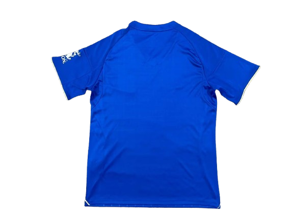 Couleur et motif : Le maillot est dominé par le bleu royal emblématique du club. Un motif subtil et géométrique, inspiré des motifs de la couronne royale, est finement tissé dans le tissu, rendant hommage à l'histoire et au statut de "Kings of England" du club.