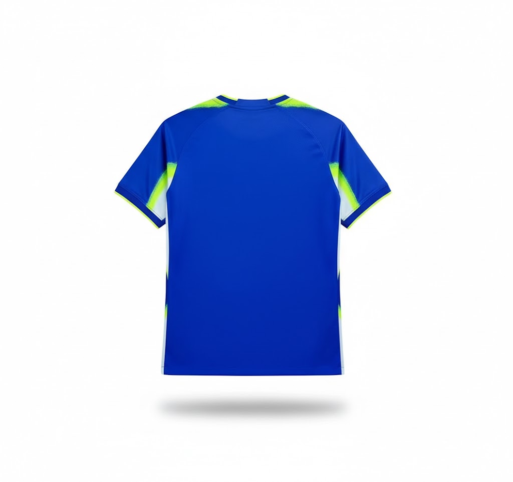 Contraste Électrique : Le fond bleu est sublimé par des motifs "spray" en jaune volt et blanc sur les épaules et les flancs, évoquant la vitesse et l'énergie créative.