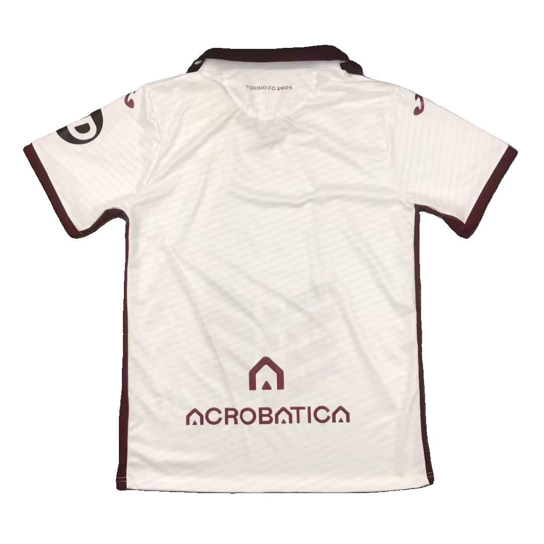Le maillot extérieur du Torino FC pour la saison 2024-2025, fabriqué par Joma, présente une base blanche élégante, fidèle à la tradition du club pour ses tenues de déplacement.