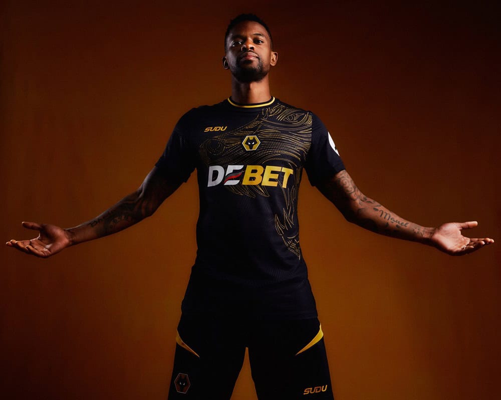 - Le maillot extérieur Wolverhampton 2024-2025, conçu par Sudu, présente une base entièrement noire, offrant un look moderne, élégant et sobre.
