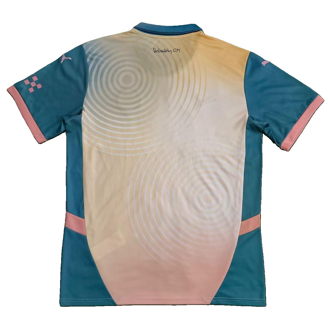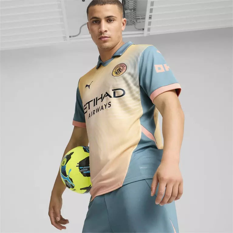 - Le quatrième maillot de Manchester City pour la saison 2024-2025, conçu par Puma, est une édition spéciale co-créée avec Noel Gallagher, célèbre musicien d’Oasis et supporter emblématique du club, pour célébrer les 30 ans de l’album « Definitely Maybe »