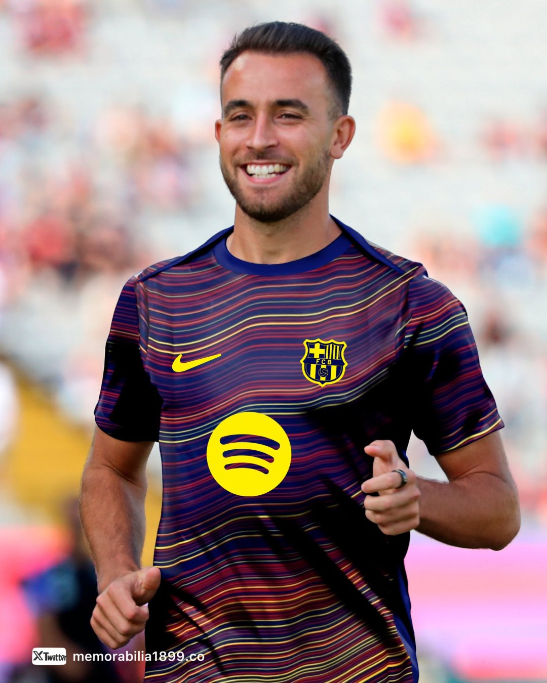 Les logos Nike, FC Barcelone et Spotify ressortent en jaune vif, apportant une touche de contraste et de visibilité exceptionnelle.