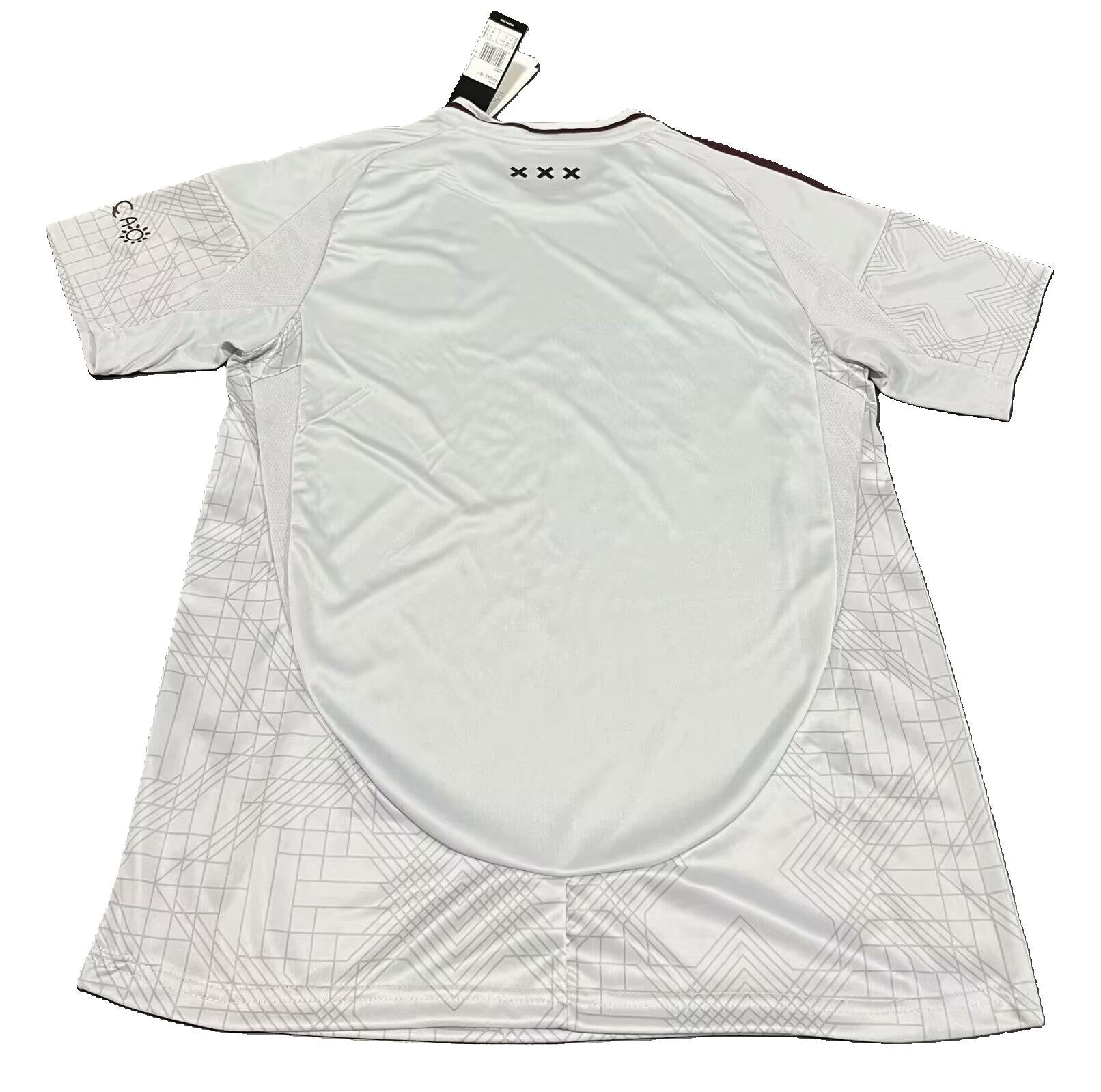 Le maillot third de l’Ajax Amsterdam pour la saison 2024-2025, conçu par adidas, s’inspire du paysage urbain d’Amsterdam et de l’architecture locale. Il arbore une dominante grise, avec des motifs géométriques rappelant l’École d’Amsterdam et la brique rouge caractéristique de la ville.