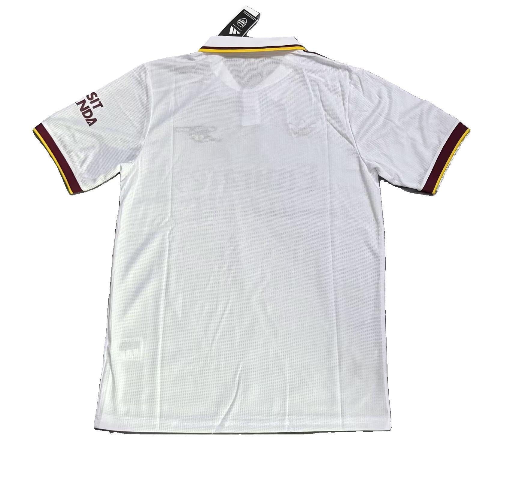 Inspiré du mythique kit alternatif 2007-09, ce maillot arbore une base blanche raffinée, sublimée par des détails bordeaux et dorés pour un rendu à la fois moderne et chargé d’histoire.