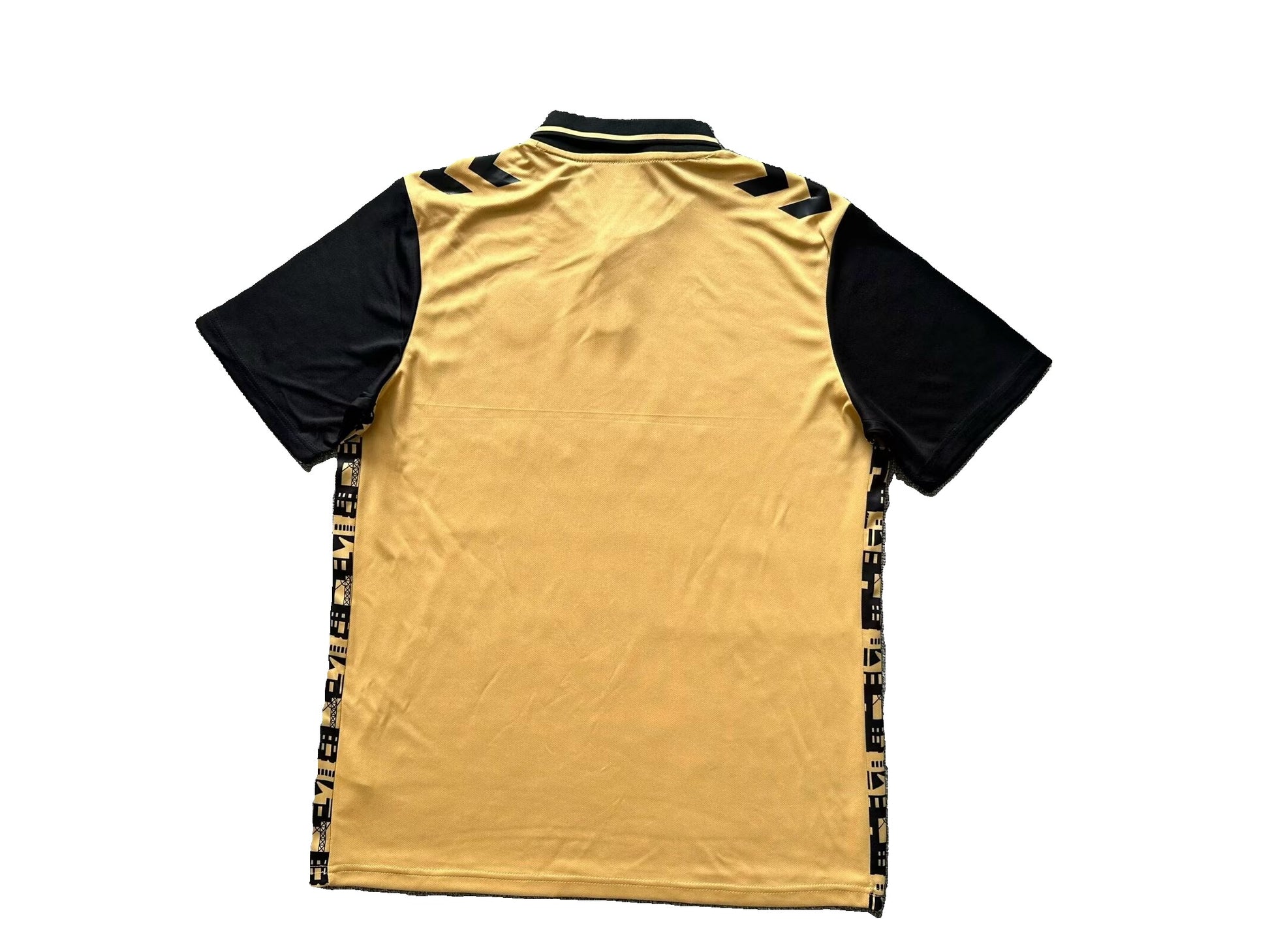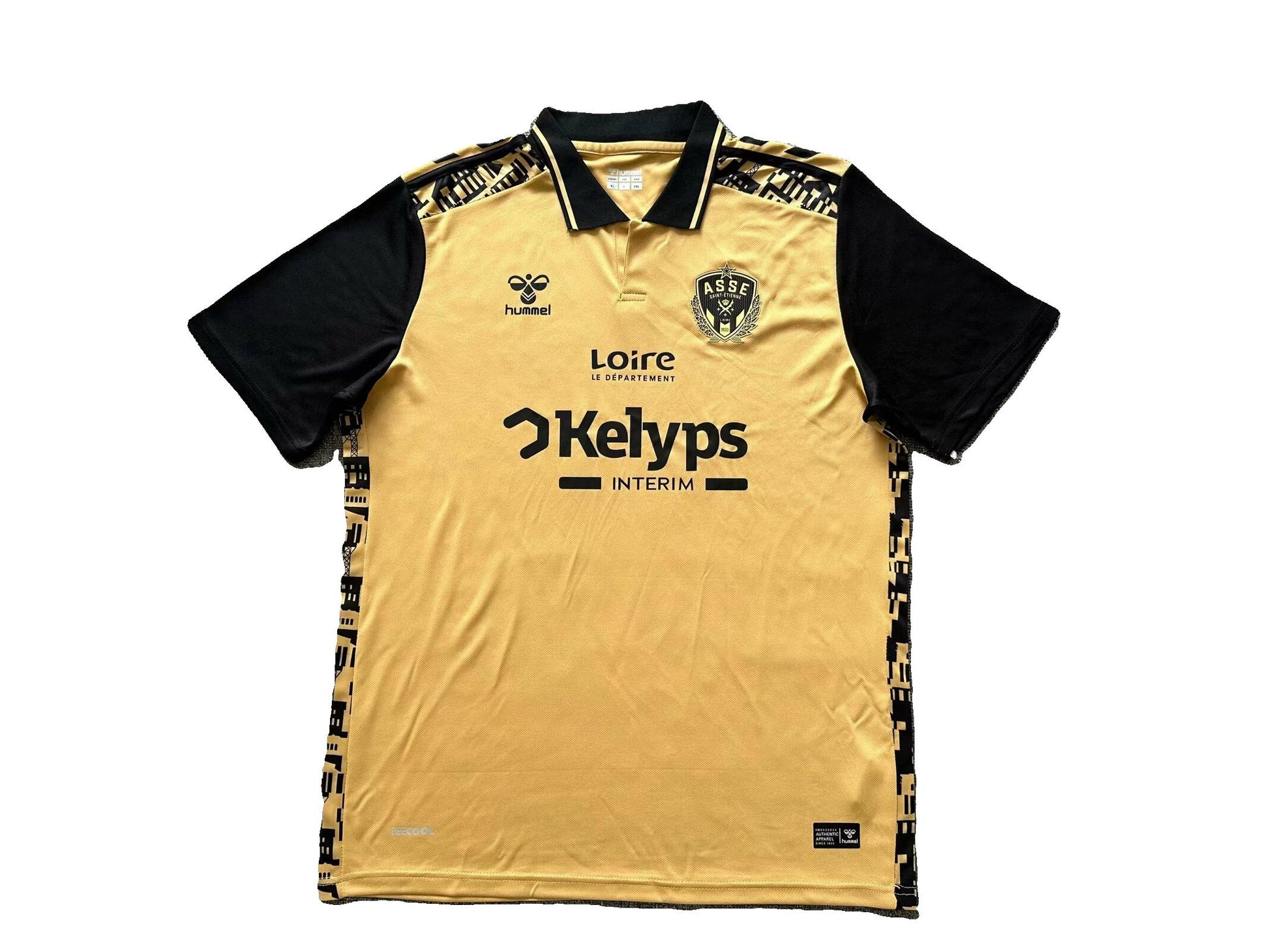 Le maillot third de l’AS Saint-Étienne pour la saison 2024-2025, conçu par Hummel, se distingue par une teinte or inédite, rehaussée de détails noirs, incarnant élégance et originalité - une première dans l’histoire du club.