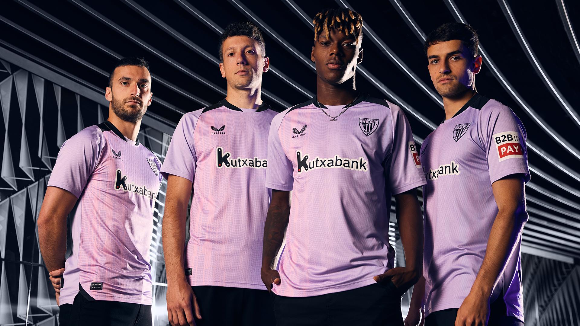 - Le maillot third 2024-2025 de l’Athletic Bilbao, conçu par Castore, se distingue par une couleur principale lavande (violet clair), une teinte inédite et audacieuse pour le club.