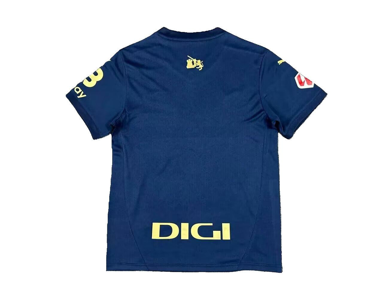 - Le troisième maillot Deportivo Alavés 2024-2025, conçu par Puma, se distingue par une base bleu marine foncé ("Dark Marine") avec des accents dorés, offrant un rendu élégant et premium.