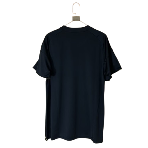Une palette de couleurs sophistiquée : Le maillot se distingue par sa base entièrement noire, rehaussée par des détails dorés éclatants. Ce contraste luxueux s'étend du blason monochrome du club aux emblématiques bandes Adidas sur les épaules.