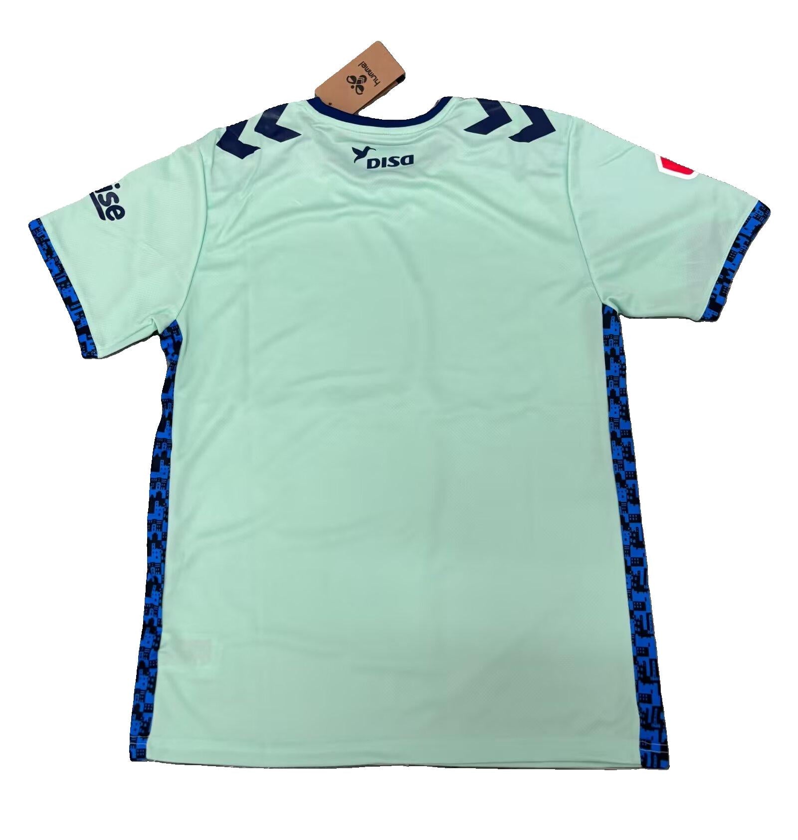 - Le maillot third 2024-2025 de l’UD Las Palmas, fabriqué par Hummel, est principalement vert avec des touches de bleu marine, une combinaison originale et distinctive pour le club.