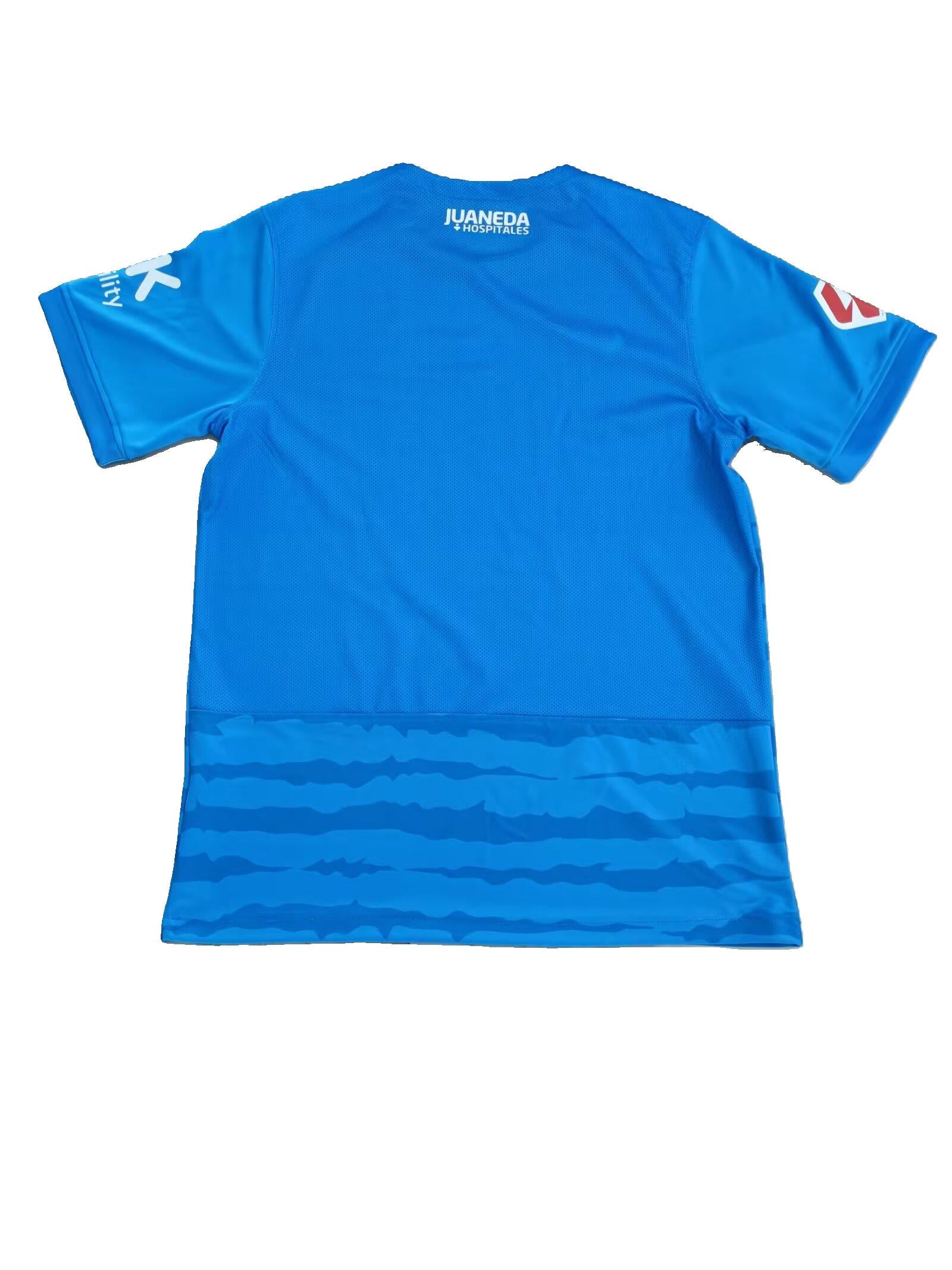 Le maillot third (troisième maillot) du RCD Majorque pour la saison 2024-2025, conçu par Nike, est principalement bleu. Il s’inspire de la couleur de l’eau de la mer Méditerranée, avec un motif évoquant les reflets et nuances de la mer. La teinte dominante est un bleu vif, parfois appelée "University Blue" ou "Royal Blue", et le maillot présente des détails blancs, notamment pour les logos et les éléments secondaires. Ce design offre un contraste marqué avec les maillots domicile (rouge) et extérieur (jaune fluo et noir), et met en avant une esthétique moderne et rafraîchissante.