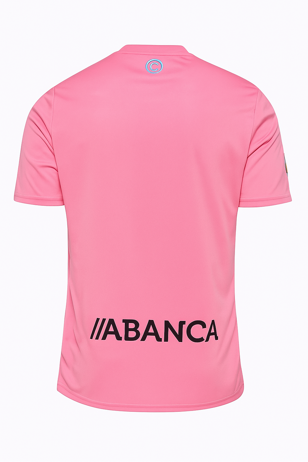 Faites sensation avec le maillot third RC Celta Vigo 2025-2026, une création Hummel audacieuse à la teinte rose vif sublimée par des touches bleu ciel sur le col, les poignets et le logo.