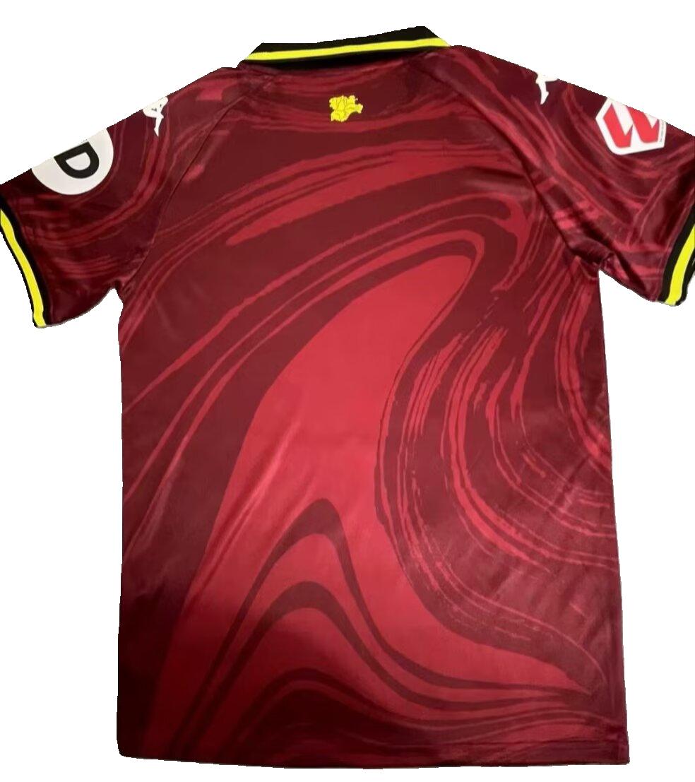 Le troisième maillot du Real Valladolid pour la saison 2024-2025, conçu par Kappa, est à dominante rouge vin. Il s’inspire des vignobles et du vin de Castille-et-León, rendant hommage aux 17 appellations d’origine protégée de la région. Le maillot présente un graphique fluide évoquant l’écoulement du vin dans les tasses et verres, un clin d’œil à la tradition locale. Les détails jaunes sur les manches et le large col représentent le vin blanc, tandis que le motif fluide symbolise également la rivière Duero, essentielle à la région. Ce design allie ainsi identité locale, élégance et originalité.